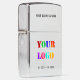 Aangepast lettertype en kleuren - Zippo aansteker met uw Logo en tekst Promotionele zaken Gepersonaliseerde Zippo aanstekers / cadeau - Uw Logo / Afbeelding of QR-code toevoegen - Foto / en tekst / Contactinformatie / meer - Formaat wijzigen en verplaatsen of verwijderen en onderdelen / tekst toevoegen met het gereedschap Aanpassen. Kies / voeg uw lettertype / grootte / kleuren ! toe ( Selecteer uw logo-kleur met filter voor kleuren ) Gebruik alstublieft uw logo - afbeelding dat geen inbreuk maakt op iemands !! Succes - wees blij:)