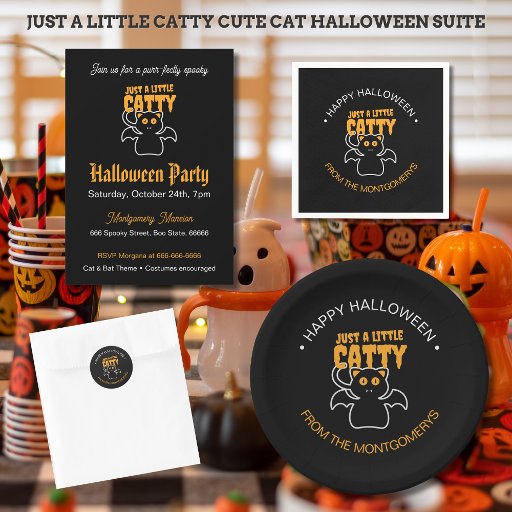 Nodig uw gasten uit in stijl met onze *Custom "Just a Little Catty" Black Cat Bat Halloween Uitnodiging*! Perfect voor kattenmoeders, vaders en katachtige fans, deze uitnodiging is voorzien van een speelse zwarte kat in de vorm van een vleermuis, die spookachtig combineert met schattig voor de ultieme Halloween-vibe. Personaliseer het met uw familienaam en evenementengegevens om een unieke, feestelijke uitnodiging te creëer die zeker de toon zet voor een leuk feest. Of je nu een Halloween-feest organiseert of een spookachtige bijeenkomst, deze uitnodiging is een must-have voor kattenliefhebbers die genieten van een beetje Halloween-kattenkwaad!
