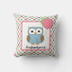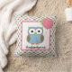 Kute gepersonaliseerde kussen om de kamer van je kind te versieren! Zoete owl met ballonnen, op een achtergrond van overeenkomende gekleurde poka dots. Personaliseer met om het even welke naam of tekst.