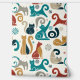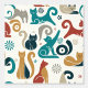 Geometrische katten in een aangenaam palet van turkoois en goudenroede op een gebroken witte achtergrond.