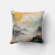 Een zeer abstract landschap dat hints naar bergen, water, bomen en lucht in perzik, grijs en gouden creëer's een mooi, harmonieus, wabi-sabi ontwerp op dit kussen gooien.