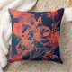 Beauty and the Grunge. Textured rusty red and orange paint daubed accent cushions decorated with rose illustration.