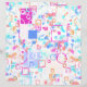Een abstract ontwerp van gelaagde geometrische vormen op een rommelige achtergrond.