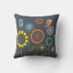 Voeg een floraal fancy spetje toe aan je huis met dit mooie en leuke abstracte bloesemotief, dat je een kussen geeft die je en je gasten zeker tevreden en comfortabel zal stellen. Met een mooi abstract bloemen en vogelfloreel ontwerp in blauwe gele, paarse, oranje en groene kleuren op zwarte achtergrond, voegt dit kussen zeker een beetje bloeiende schoonheid toe aan elke ruimte.