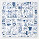Dit abstracte ontwerp heeft een complex patroon van handgetekende doodles, die lijken op een blauwdruk of technische schema's. Ingewikkelde lijnen, vormen en machineachtige symbolen komen samen in een chaotische maar samenhangende stroom, ideaal voor liefhebbers van industriële of futuristische kunst. De marineblauwe schetsen op een lichte achtergrond creëer vormen een visueel aantrekkelijk contrast en bieden een moderne, op technologie geïnspireerde esthetiek.