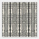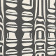 Een gedurfd, zwart en beige op stammen geïnspireerd geometrisch patroon met een herhaald abstract ontwerp. De verticale lijnen en symmetrische vormen geven het een etnische en kunstzinnige uitstraling, geschikt voor moderne decoratie, textiel of mode items. Perfect voor het creëren van een unieke, stijlvolle achtergrond met een rustieke maar eigentijdse uitstraling.