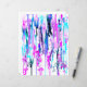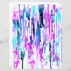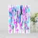 Een abstract ontwerp van vrije waterverf druppels en spatten in een kleurpalet van blauw, turquoise en roze.