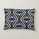 A striking abstract pattern featuring black and white zebra stripes forming diamonds, with vibrant blue and red accents creating an intriguing optical effect.