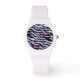 Elegant, stijlvol horloge met abstract zebraprint in zwart, blauw, violet en roze kleuren, gemaakt van mijn originele acrylverf.