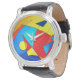 Wat gebeurt er als een kunstenaar te veel tijd in handen heeft? Ze maakt horloges natuurlijk! Wees de eerste van je vrienden die een gewaagd, kleurrijk, abstract kunsthorloge heeft. Dit ontwerp is gebaseerd op een origineel olieverfschilderij, getiteld, "Kite", van de internationaal onbekende kunstenaar Carmen I Hurt.