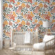 Abstracte Bloemen & Vogels Mid Century Modern Patt Behang