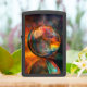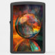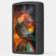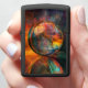 Een kleurrijke abstracte bolillustratie op een Zippo aansteker.