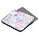 Een abstract ontwerp van gelaagde geometrische vormen op een rommelige achtergrond.