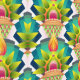 Kleurrijk abstract waaiervormpatroon. Leuk en helder. In kleuren van blauw, groen, rood en sinaasappel.