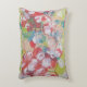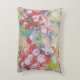 Abstract "floral-like" kussen, een mixed-media kunstwerk, met de hand geschilderd met rood, lichtgroen, blauw, wit en perzik, waardoor het een meest gewilde attractie voor uw huis.