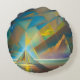 abstracte kunst met gouden en blauwe piramide rond kussen