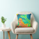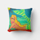 Mijn kleurrijke abstracte schilderij van een zeemeermin op het strand maakt dit kussen een funky kunstwerk!