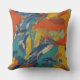 Een prachtige abstracte mix van oranje, blauw, geel en beige in een olieverfstijl geeft deze kussen een echt klassiek gevoel.