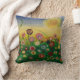 Abstracte papaverveldkussen. Licht, helder en vrolijk. Abstracte papavers in het zomerveld zijn helder en leuk. Prachtige abstracte bloemen. Heldere zachte tinten rode, roze, blauwe en gele bloemen zwaaien in een veld op een hete wazige zomerdag. Gele zon in een wazige blauwe kleur vervaagt de hemel. Foto van het originele schilderij "Abstract papaverveld in de zon".