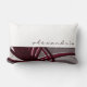 De gepersonaliseerde accentuop heeft een stijlvol, kunstmatig abstract ontwerp met schoppen van gebrande wijn en grijs met witte accenten op een grijze achtergrond. Het hoogste gedeelte kenmerkt een eenvoudige duidelijke witte achtergrond met gepersonaliseerde naam die in het stijlvolle lagere manuscript van het hoesje wordt voorgesteld. Het onderste gedeelte bevat grijze, Bourgogne, witte en wijngekleurde linten die gelaagd en gekleurd zijn om perspectief en diepte te geven tegen de grijze achtergrond. Ontworpen met douanetekst en vectorgrafiek, kunt u aanpassen door de naam te veranderen gebruikend het verstrekte gebied. Pas verder aan door aan de lagen sectie te navigeren om de afbeeldingen te uitzichten en de achtergrondkleur of andere ontwerpelementen te veranderen om uw smaak aan te passen, of de "contact de ontwerper"knoop voor hulp te gebruiken. Een modern, gepersonaliseerd kussen voor uw woonkamer of bank in de huiskamer, een stijlvol kussen voor uw slaapkamer of favoriete stoel, of een doordacht, stijlvol cadeau voor haar.