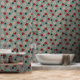Abstracte rode en groene bloemen op grijs behang