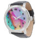 Een horloge met een fancy artistiek abstract design. Waterverf schilderen met de kleuren mengen en mengen creëren een mooi vloeiend marmerpatroon.