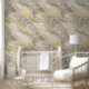 Een chique digitaal gegenereerd marmeren ontwerp met gouden, witte, gele en zilveren accenttextuur, gebruikt voor decor, behang, stof en feestkaarten om te personaliseren voor verschillende gelegenheden.