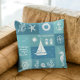 Voeg een vleugje kustcharme toe aan uw retraite aan zee met dit prachtig ontworpen werpkussen met een colorblock-ontwerp in tinten van de oceaan, blauwgroen blauw en turquoise. Perfect voor een nautisch strandhuisthema, dit kussen toont grillige illustraties die doen denken aan het zee: zeilboten, zeepaardjes, ankers, koraal, schelpen, een levensredder en een scheepswiel. Dit kussen is gemaakt in een helder blauw en wit palet en is het ideale accent voor huisdecoratie met een strandthema, vakantiehuizen of op de kust geïnspireerde woonruimtes. Personaliseer het eenvoudig met uw familienaam, een aangepast bericht of een vastgestelde datum om het uniek van u te maken. Of je nu een winderig strandhuis styling, een geliefde een doordacht housewarming cadeau geeft of een vakantie retraite opknapt, dit werpkussen combineert praktische bruikbaarheid met elegantie aan de kust. Transformeer elke kamer in een badplaats met dit tijdloze ontwerp!