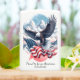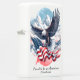Deze gedurfde illustratie toont een zeearend die oprijst door een hemel geborsteld met zachte wolken en de Amerikaanse vlag in zijn klauwen draagt. Daaronder strekken rode, witte en blauwe bergen zich uit over de horizon ter ere van het vaderland. De kunst combineert handgetekende potloodwerk met zacht geschilderde schaduwen voor een opvallende balans tussen realisme en emotie. Bovenal versterkt de uitdrukking "Trots om een Amerikaan te zijn" trots de geest van vrijheid.
