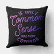 Grappig, sarcastisch gezegde op een gooierig kussen dat zegt: "Als alleen gezond verstand gemeenelijker was."