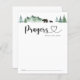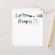 Baby shower gebeden kaart met waterverf-evergroene bomen, bergen en mama met baby beer.