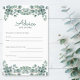 De bruid zal het advies van de andere vrouwen die het vrijgezellenfeest bijwonen graag lezen. Geef deze advieskaarten door onder de douche en de aanwezigen zullen hun woorden van wijsheid delen. In een groen en wit met sprays eucalyptusbladeren boven en onder.
