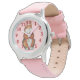 Dit originele trendy girlie roze kinder horloge heeft een illustratie van een schattig bruin konijntje op het horlogegezicht, het konijntje ziet er geweldig uit tegen de roze achtergrond van het horlogegezicht en de roodachtige bruine cijfers zijn vet genoeg voor iedereen om te zien. Het roze horloge heeft ook een bijpassende roze band. Dit knuffeldier houdt een bos kleurrijke bloemen vast en hij heeft een vrolijke glimlach op zijn gezicht. De zoete bruine konijnenillustratie ziet er geweldig uit op dit kinderhorloge en zal kinderen van alle leeftijden versieren. Elke kiddie zal houden van dit coole en unieke leuke baby bunny tijdstuk. Het originele konijnenschilderij is in waterverf afbeelding.