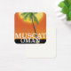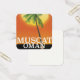Mascate Oman affiche de vacances d'un grand soleil couchant et d'un palmier dans la nation du moyen-orient.