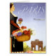 Affiche vintage reconstituée et numériquement augmentée de voyage montrant un vendeur de fleur de femme tenant un panier des fleurs ; à l'arrière-plan est l'Arc de Triomphe et dans le ciel, un avion de constellation. Imperfections enlevées. Couleurs corrigées. Courtoisie d'image de Bibliothèque du Congrès.
