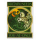 Affiche recruteuse britannique vintage pour la Première Guerre Mondiale. L'image de rondeau est de St George massacrant le dragon. (Des 1915) lithographies du 20ème siècle originale par le Comité recruteur parlementaire. Tous droits réservés art 2013 d'aumônier de ©
