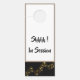 Cet affichette de porte est double face et en noir et blanc avec un flux de notes doré sur le personnel. en bas. Bordures supérieures entourées d'une bordure gris argenté avec un exemple de texte de "Shhhh ! En session". Customisez cet article à votre goût avec la couleur ou l'expression que vous désirez, ou achetez comme prévu.