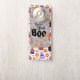 L'affichette de porte est un joli et ludique décor sur le thème de l'Halloween qui reflète l'esprit de la saison. L'arrière - plan du cintre est orné d'un assortiment coloré et vibrant de bonbons d'Halloween. Un mélange de bonbons orange, noir, violet et vert forme une toile de fond joyeuse et attrayante qui rappelle instantanément l'atmosphère douce et festive d'Halloween. Au centre de l'affichette de porte, en évidence, se trouvent les mots "You've Been Booed". Les mots sont écrits dans une police fantaisiste, légèrement étrange, qui dégage un sentiment d'amusement espiègle. Les lettres sont surlignées d'une couleur blanche fantomatique, créant un contraste subtil par rapport à l'arrière - plan rempli de bonbons. Chaque lettre semble avoir une personnalité ludique propre, contribuant à l'ensemble de l'ambiance ludique et invitante de l'affichette de porte.