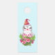 Affichette de porte au design mignon et fantaisiste avec un adorable pingouin portant un chapeau de santa rouge. Derrière un bouquet de fleurs aux sucres de canne rayés roses et blancs.