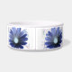 This awesome pet bowl features a beautifully detailed fotograph of an African daisy flower. The foto has been digitally altered, resulting in a stunning glowing blue flower. The centre of the flower glows the brightest, while all the petals have a deep blue colour that fades to a paler blue the further away they get from the centrum of the flower.
