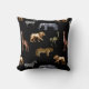 Een Afrikaans gethemd speldenkussen met een patroon van olifanten, zebra's, struisvogels, luipaarden, giraffen en leeuwen op een zwarte achtergrond. Deze kussen maken een geweldige hedendaagse toevoeging aan je thuisdecor, of maken een geweldig huisverwarmingscadeau.