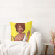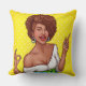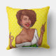 Jetez un oreiller avec une illustration pop art d'une belle femme noire aux cheveux afro montrant le signe OK et pointant un doigt dans la direction de quelque chose.