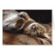 Fotooliesschilderij van Abyssiniër, met een sprei die klaar is om te spelen. Mooie lichtgroene ogen. Een briefkaart voor een kattenliefhebber, de overheersende kleuren zijn browns en tan boven een zwarte achtergrond, die zijn geverfd om olie te simuleren.