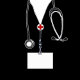 Creatief medisch-thema gunst doos cadeau ontwerp voor arts afstuderen partij met zwarte ziekenhuis scrubs. Bewerk tekst om te personaliseren voor medische school afstuderen feesten.