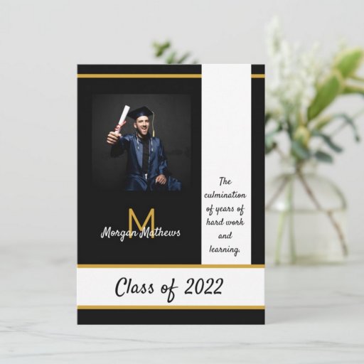 Voeg uw foto's en veranderingstekst aan dit gewaagde grafische bord van het afstuderen in zwarte witte en goudtoon toe.