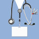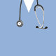 Medische vormgeving met blauw ziekenhuisschrobben. Geef tekst uit om te personaliseren.