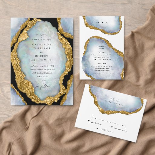 Agate Geode Pearl Mariage d'or Insérer carte