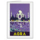 Affiche Vintage voyage pour Agra, Inde montrant le Taj Mahal.