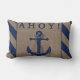 Ahoy. Nautical Anchor Navy Blue & Burlap Stripes Kussen