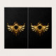 Ailes mécaniques brillantes, avec des engrenages et bannière ronde en laiton. Steampunk
